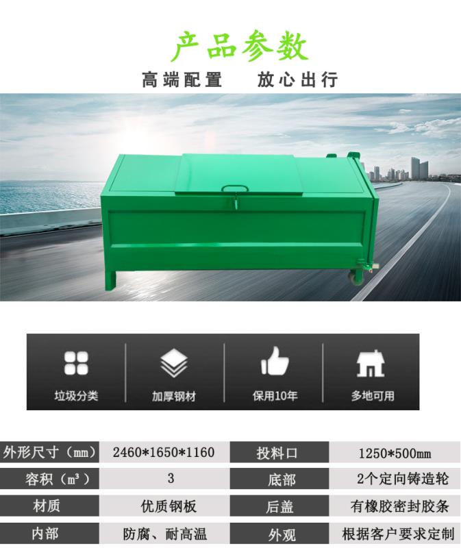 產(chǎn)品簡(jiǎn)介:垃圾箱容積:3立方。